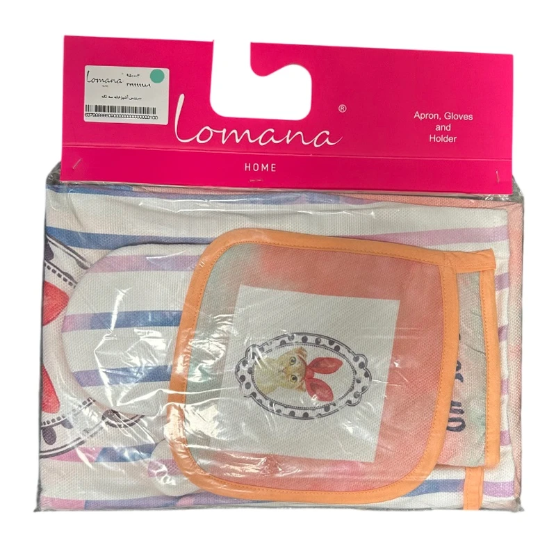 با ست لوازم پارچهای آشپزخانه 3 تکه لومانا مدل KITTY، جلوهای بینظیر به آشپزخانهتان ببخشید! طراحی زیبا و کیفیت بینظیر این مجموعه، همراه همیشگیتان در آشپزی خواهد بود. شامل دستکش، پیشبند و دستگیره با طرحهای دلنشین، تجربه آشپزی را لذتبخشتر میکند. ست کلاه و پیشبند آشپزخانه لومانا یک ست بسیار زیبا، با کیفیت و شیک می باشد. این ست شامل پیشیند، دستمال و دستکش آشپزخانه می باشد و تماما از پارچه وارداتی با الیاف با کیفیت دوخته شده است.