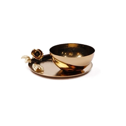 پیش دستی 20 سانت بهمراه پیاله. جنس بدنه سیلور و فلز- جنس گل و تزیینات برنجی