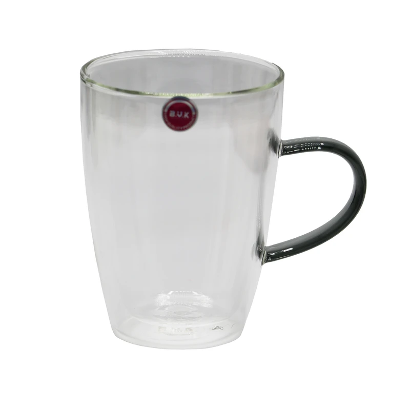 لیوان دو جداره دسته دار تمام پیرکس ۳۰۰ML قابل استفاده روی شعله ی مستقیم و اجاق های ماکروویو قابل شستشو در ماشین ظرفشویی طراح برند بی.وی.کی بدون اضافه کردن کادمیوم یا سرب. بسیار زیبا و با دوام
